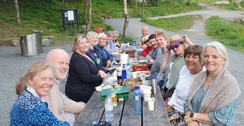 Som vanlig avsluttet vi vårsemesteret med sosial samling. Denne gangen med en flott kveld på Fløyen og Skomakerdiket. Været var litt usikkert, men jammen fikk vi noen solstråler i løpet av kvelden. Vi hadde med oss mat og drikke i kurver og sekker. Vi sang og hygget oss, men vi avsluttet da myggen ble for plagsom.