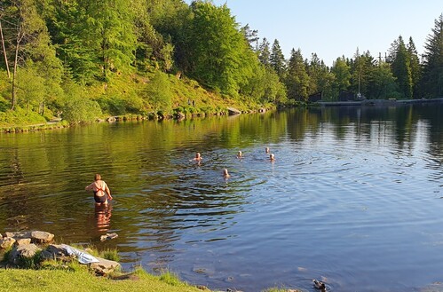 15. juni gjentok vi fjorårets suksess og avsluttet vårsemesteret med samling ved Skomakerdiket på Fløyen. Det ble en flott kveld med god temperatur og deilig sol. Det var en god gjeng som våget seg ut i vannet. Vi hadde med oss mat og drikke i kurver og sekker. Arrangementskomitéen hadde tent opp grillen.
