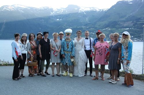 30. juni 2018 giftet Maren og Jarle seg i Sekse i Sørfjorden. Maren er en av våre nyeste og yngste sangere. Selv om det var sommerferie, var det en god gjeng som ville overraske Maren og Jarle (sikkert også gjestene i bryllupet). Gjengen under dro avgårde fra Bergen i et nydelig vær og det ble en kjempeartig tur. Vi ønsker brudeparet til lykke med fremtiden.